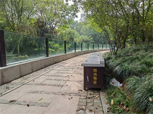 公司生產裝配式景觀玻璃防洪墻應用在杭州九溪濕地公園,總長度240多米,高度近1米,其中步道口采用裝配式鋁合金擋板結構(汛…...